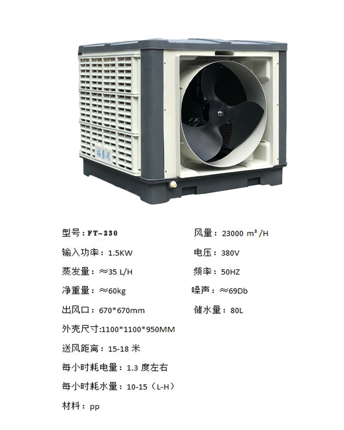 福泰環(huán)?照{(diào)性能穩(wěn)定在越炎熱的天氣下降溫的效果越好。適用于開敞式及半開敞式環(huán)境,能夠直接輸送自然風(fēng)及輸送降溫后的涼風(fēng)。室外新鮮空氣經(jīng)福泰蒸發(fā)式冷氣機(jī)過濾、降溫后向室內(nèi)源源不斷的大量輸送,將室內(nèi)帶有異味、粉塵和混濁悶熱的空氣排出室外,同時(shí)兼顧換氣降溫及增加空氣含氧量等多種效果。