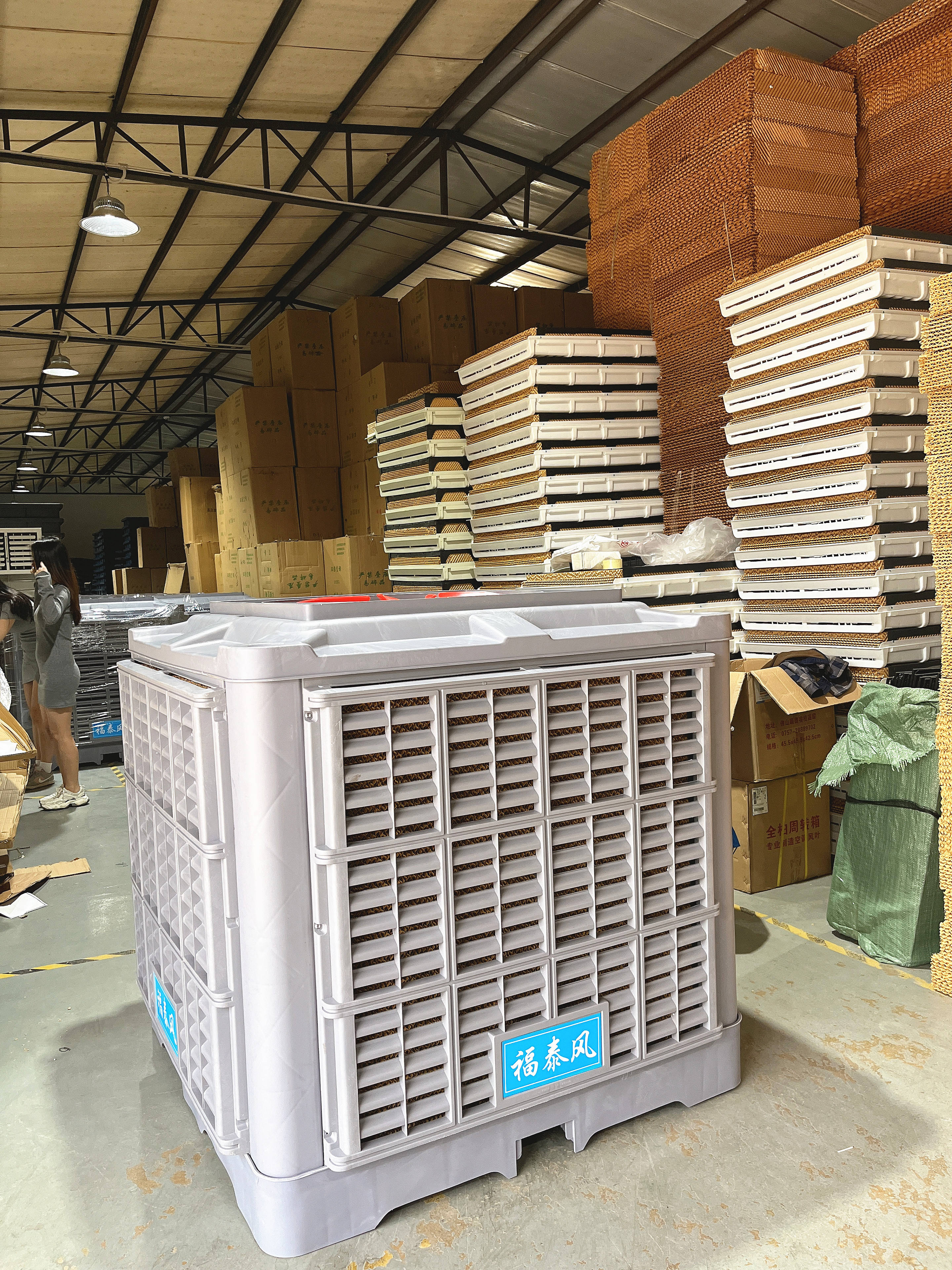 第一,利用自然通風。自然通風是一種簡單而有效的降溫方式。通過合理設置車間門窗,利用室外空氣流通進入車間,以此將車間中的熱空氣排出,達到降溫效果。同時,安裝通風扇也是一種較為常見的自然通風方式,將車間內(nèi)的空氣流通起來,緩解高溫問題。這種方法降溫比較差,因為車間在夏季時候設備的發(fā)熱,人員多車間空氣不流通自然通風不能給急需高溫的車間降溫,只是在建造廠房或設備擺放的位置根據(jù)氣流循環(huán)方向,冷熱分區(qū),合理的分布排風和送風點位,讓車間的氣流按照我們設計好的路徑流動,遵循低溫區(qū)往高溫區(qū)流動,高溫區(qū)往室外流動,工作區(qū)往設備區(qū)流動,搞好這個要點就能讓車間快速降溫, ![]() 第二,科學降溫。除了自然通風外,還有一些其他的科學降溫方法。比如,環(huán)?照{搭配工業(yè)大風扇,蒸發(fā)冷風省電空調,水簾風機等技術進行降溫,通過強制輸送涼爽風壓到車間內(nèi)部,有效地將車間內(nèi)的溫度降低。 第三,節(jié)能降溫。降溫的同時,也需要考慮能源消耗問題。因此,在降溫過程中,需要使用一些節(jié)能型產(chǎn)品,如:節(jié)能環(huán)保低碳環(huán)?照{等。 ![]() 第四,合理調整車間工作時間。夏天高溫時期,可以考慮將車間工作時間調整為早晚溫度較低的時段,避免在高溫時段工作。通過調整工作時間,有效地降低車間內(nèi)的溫度,提高工作效率。 第五,注意車間內(nèi)通風狀況。車間內(nèi)的通風狀況也影響著車間降溫的效果。因此,保持車間內(nèi)的清潔衛(wèi)生、通風狀況,定期清潔、更換通風設備,是保證車間高效降溫的重要措施