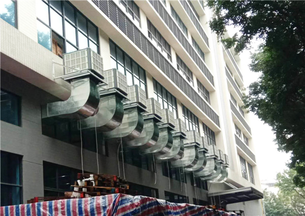 還有一點呢,就是傳統(tǒng)機械空調(diào)的系統(tǒng)呢,為了達到節(jié)能的目的,一般都會設(shè)置這個回風(fēng),而很多生產(chǎn)制造類的車間的環(huán)境可是不大好的,車間新風(fēng)量不足,也會造成車間的環(huán)境更加惡劣,且在生產(chǎn)過程當中啊,產(chǎn)生的有害氣體啊,粉塵啊得不到有效的稀釋,所以呢,大家盡可能的去找一個平衡點,找一種前期投入不太大,運行能耗呢也不是很高,既能對車間降溫又能通風(fēng)的一種方式,那么蒸發(fā)式冷風(fēng)機這種全新風(fēng)車間降溫系統(tǒng)呢?