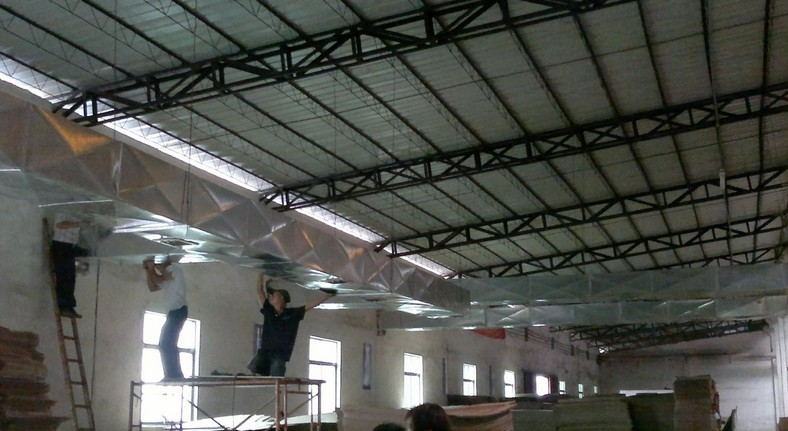 大型高溫廠房降溫通風(fēng)解決方案,鋼結(jié)構(gòu)車間降溫,鐵皮房降溫 一般這種類型的廠房都是比較高大的鋼結(jié)構(gòu)的車間比較大面積所以車間在安裝傳統(tǒng)空調(diào)時候除了考慮高費用外還要考慮通過問題,因為鋼結(jié)構(gòu)車間一般夏天導(dǎo)熱讓車間的溫度一升在升,如果你沒有及時送風(fēng)和排風(fēng)以及降溫的話車間就會越來越熱和悶的情況出現(xiàn)。這時候車間工作人員精神狀態(tài)也不會好這就是高溫帶來的連鎖反應(yīng),產(chǎn)量自然也提高不了。