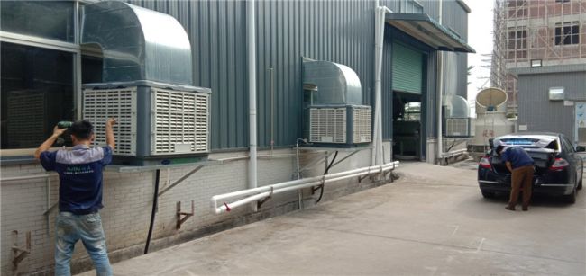 福泰在工廠車間降溫通風(fēng)改善方面有10多年的經(jīng)驗(yàn)已經(jīng)幫助了幾千家工廠改善了環(huán)境而且又不用投入很多費(fèi)用。其實(shí)有的車間不適合用傳統(tǒng)空調(diào)換氣達(dá)不到也不行,用風(fēng)扇沒效果,什么風(fēng)球都不行,像這類車間用水冷空調(diào)或水簾風(fēng)機(jī)降溫效果那是杠杠滴。讓車間空氣流動起來改善原來的悶的問題而且水冷環(huán)?照{(diào)有降溫的作用可以降溫4-10度受到很多工廠的青睞!