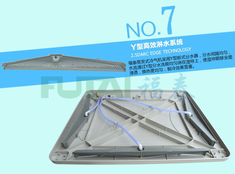 Y型敞開(kāi)式分水盤布水系統(tǒng),淋水均勻暢順使節(jié)能環(huán)?照{(diào)機(jī)內(nèi)水泵不間斷地抽取水槽內(nèi)的凈水,通過(guò)分水器均勻地送至濕簾上。當(dāng)室外空氣被強(qiáng)力風(fēng)扇吸引經(jīng)過(guò)蒸發(fā)換熱器時(shí),空氣中的水溶性異味、粉塵雜物均被水流過(guò)濾沖刷到了水槽,高速通過(guò)濕簾的氣流強(qiáng)迫水迅速蒸發(fā),從而吸收周圍大量的熱能,令氣流溫度極速下降,輸出強(qiáng)勁的低溫清新氣流。低溫潔凈的冷氣流由風(fēng)機(jī)高壓渦盤加壓后通過(guò)管道送入室內(nèi)。由于冷氣流的密度較熱氣大,故冷氣流與熱氣相遇后,迅速下沉,擠占熱氣原來(lái)的位置,熱氣被抬升到離地面3-5米的高度,而不斷進(jìn)入的低溫冷氣流始終占據(jù)著空間內(nèi)較低的高度,使該區(qū)域保持舒適宜人的溫度、濕度和鮮風(fēng)。