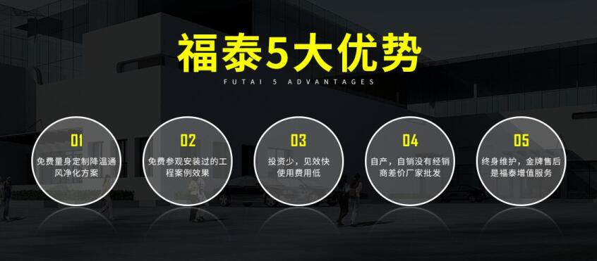 今天來給大家介紹我們自己是怎么樣的一個環(huán)保設(shè)備公司,福泰公司誕生在10多年前,老板通常給我們說做個有福氣的人胸懷像泰山高大一樣,抱著這種情懷就成立了福泰環(huán)?照{(diào)廠家,環(huán)?照{(diào)、水簾風(fēng)機是福泰的一直以來都生產(chǎn),銷售,安裝服務(wù)的產(chǎn)品,因為老板的定位就是環(huán)保設(shè)備產(chǎn)品所以還生產(chǎn)廢氣,粉塵處理設(shè)備。福泰人的使命是:專業(yè)生產(chǎn)廠房環(huán)保除塵,凈化,通風(fēng)降溫設(shè)備的踐行者,解決異味、悶熱污染空氣的終結(jié)者,我們就是要打造碧海藍(lán)天還人類一個美好的未來。
